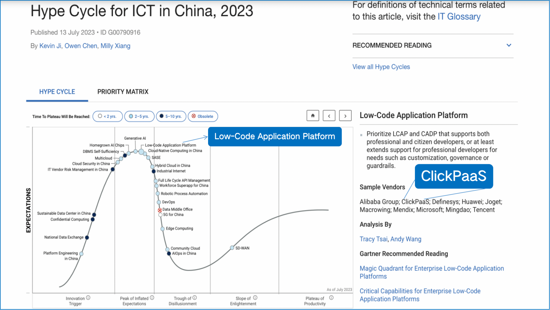 Gartner《2023中国ICT技术成熟度曲线》报告发布,金年会金字招牌信誉至上入选低代码平台代表厂商